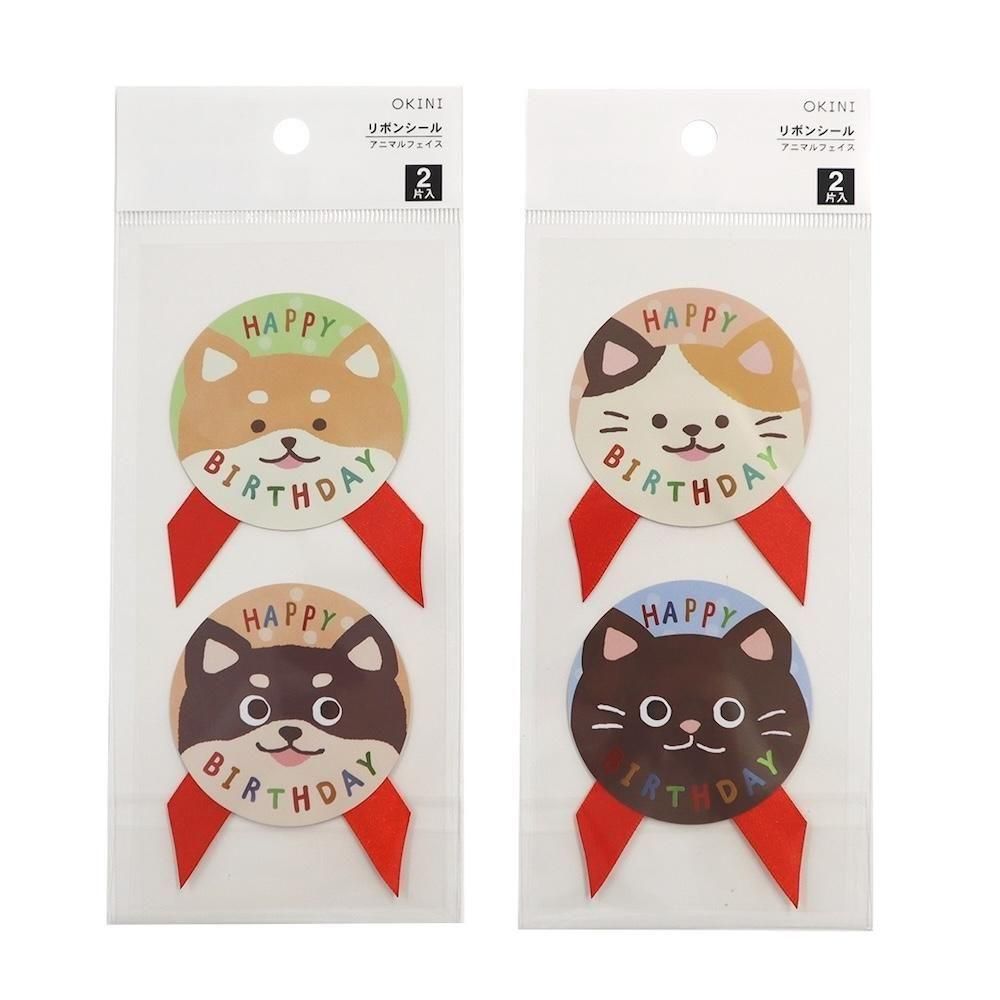 OKINI 100均 リボンシール 20片入 アニマルフェイス 柴犬 猫 誕生日 バースデー