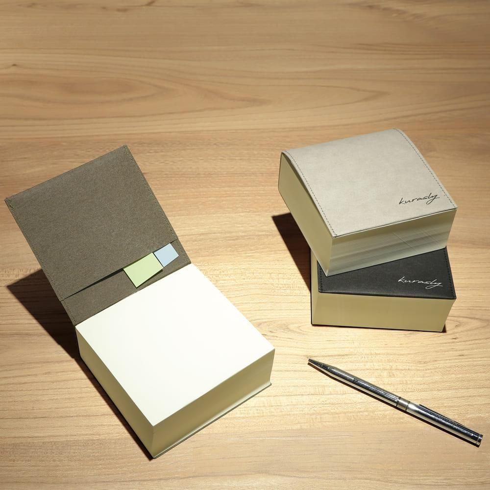デスクに置くとホテルライクな雰囲気になる、シンプルで厚みのあるブロックメモです。