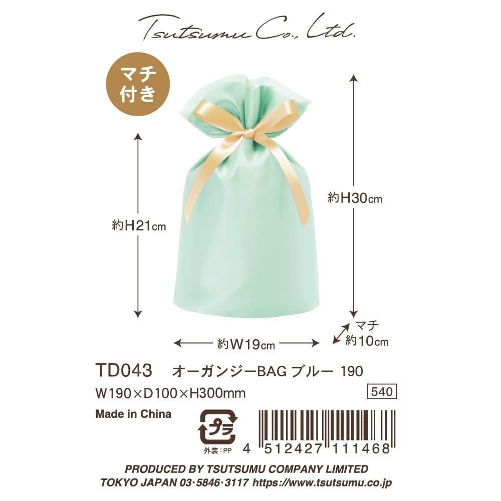 巾着バッグ ラッピング袋 オーガンジーバッグ ブルー グリーン 190