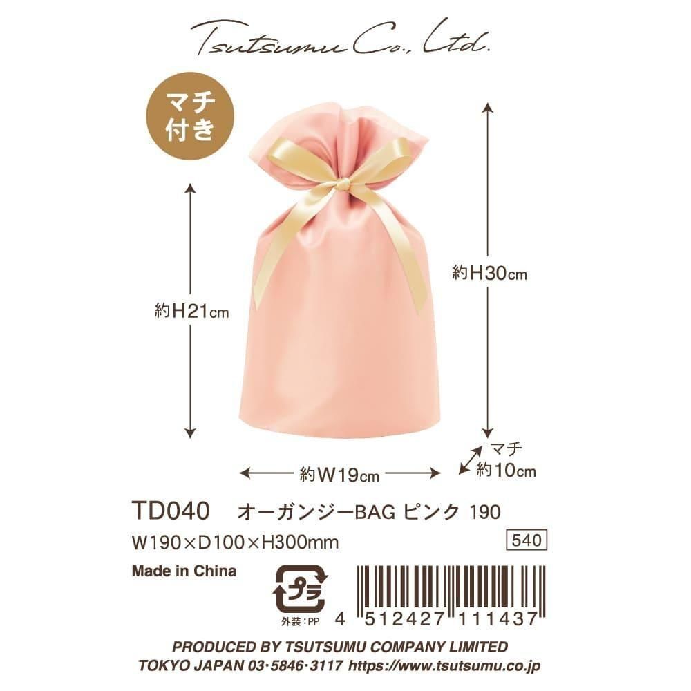 巾着バッグ ラッピング袋 オーガンジーバッグ ピンク 190