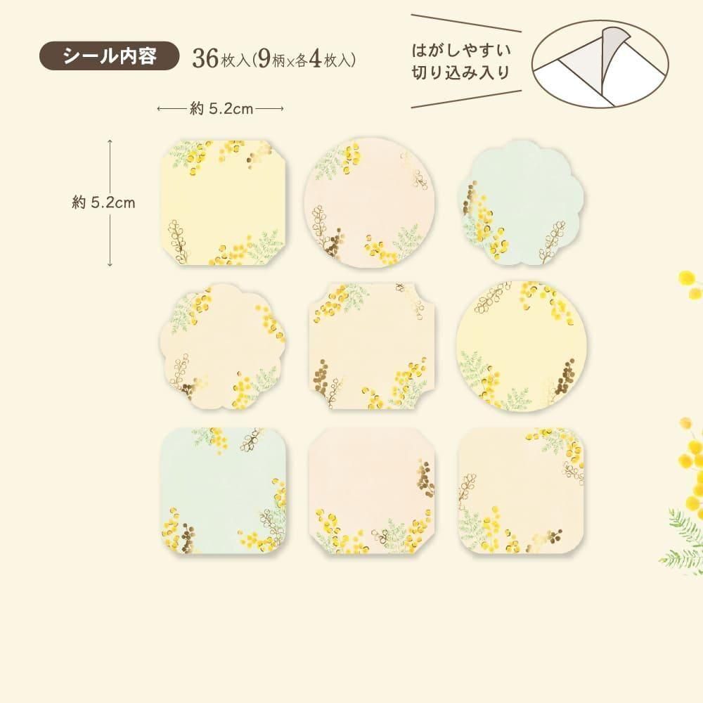 メッセージシール ミモザ 花柄 寄せ書き 箔押し