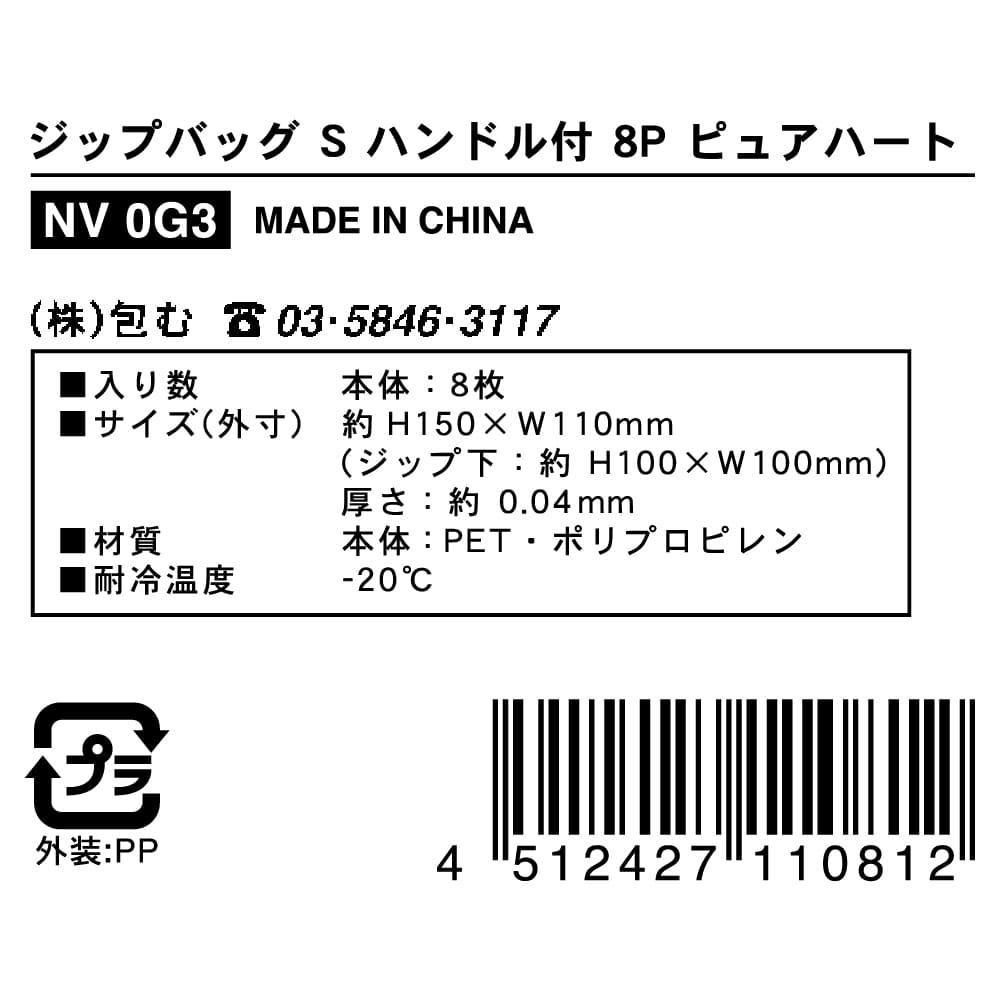 大きなハート型の透明窓がある、持ち手付きのジップバッグです。