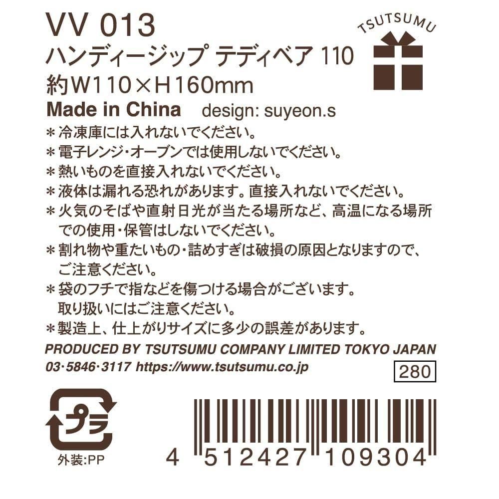 ジッパーバッグ 持ち手付き ハンディジップ テディベア 110 くま ジップバッグ バレンタイン